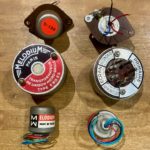 Matching transformer units for using 8 ohm speakers with a 100V amplifier system. These are really handy for installing sound...