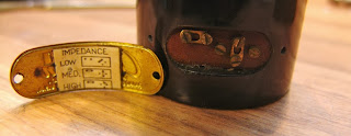 The mic can be set to either low (50 ohms), medium (250 ohms) or high impedance using jumpers and clamps hidden behind the badge. The inside of the mic looks like a bowl of spaghetti where all the wires from the transformer are run out to the panel.