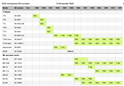 I took a little tour through some old RCA product catalogues and attempted to correlate the microphones’ common names with their MI numbers, and track any minor revisions across the years.