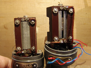 Until very recently I had only ever seen 30 ohm versions of the RV and had assumed that they were all low impedance. However, the one on the left, which came in recently, has a high impedance transformer, and measures around 6.5K ohms with the original ribbon.