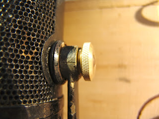 The mic arrived without some parts, so we made replacement brass washers and thumb nuts on the lathe. They look really smart, and in a few months will be a lot less shiny!
