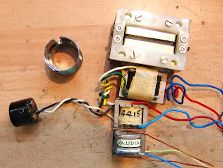 Recently, I had seven 30/50 ohm Reslo RB microphones on the bench, and I took the opportunity to examine the transformers. Although the basic construction is the same, the transformers are quite different in looks, and have different inductance values! Some have a striped core with two metals, the middle often being darker or rusty, suggesting a higher iron content.