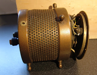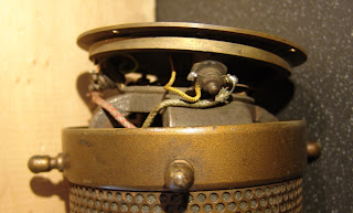 Ev of Vashion Island sent in these pictures of his wonderful tube ribbon microphone and has kindly agreed to share the photographs and description on this blog. The mic is a little bit of a mystery as it appears to be similar to an early Marconi design and the RCA PB17, yet has no maker’s mark and is different in many details.